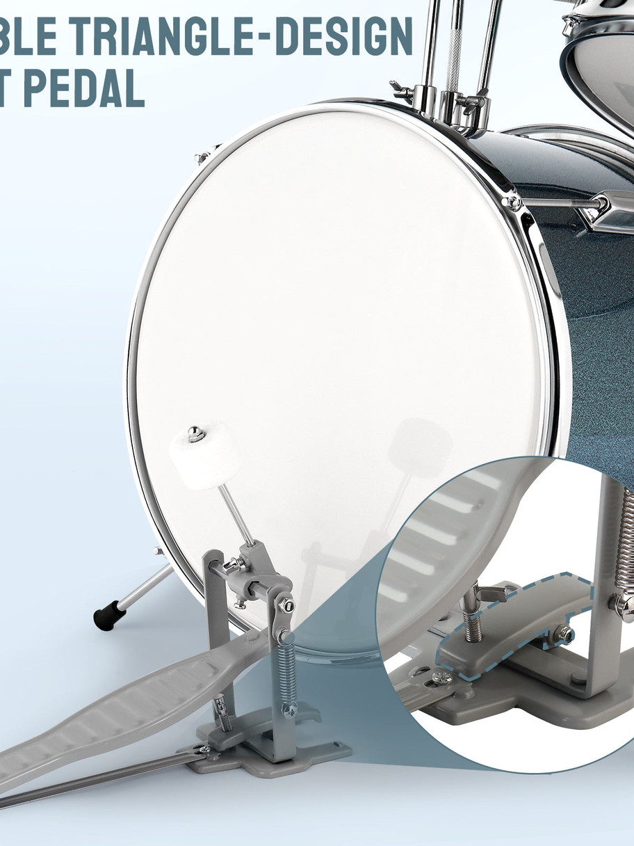 14"x10" 3-Pieces Junior Kids Drum Set Kit Pedal Drum Stick Wrench Drum Stool Sky