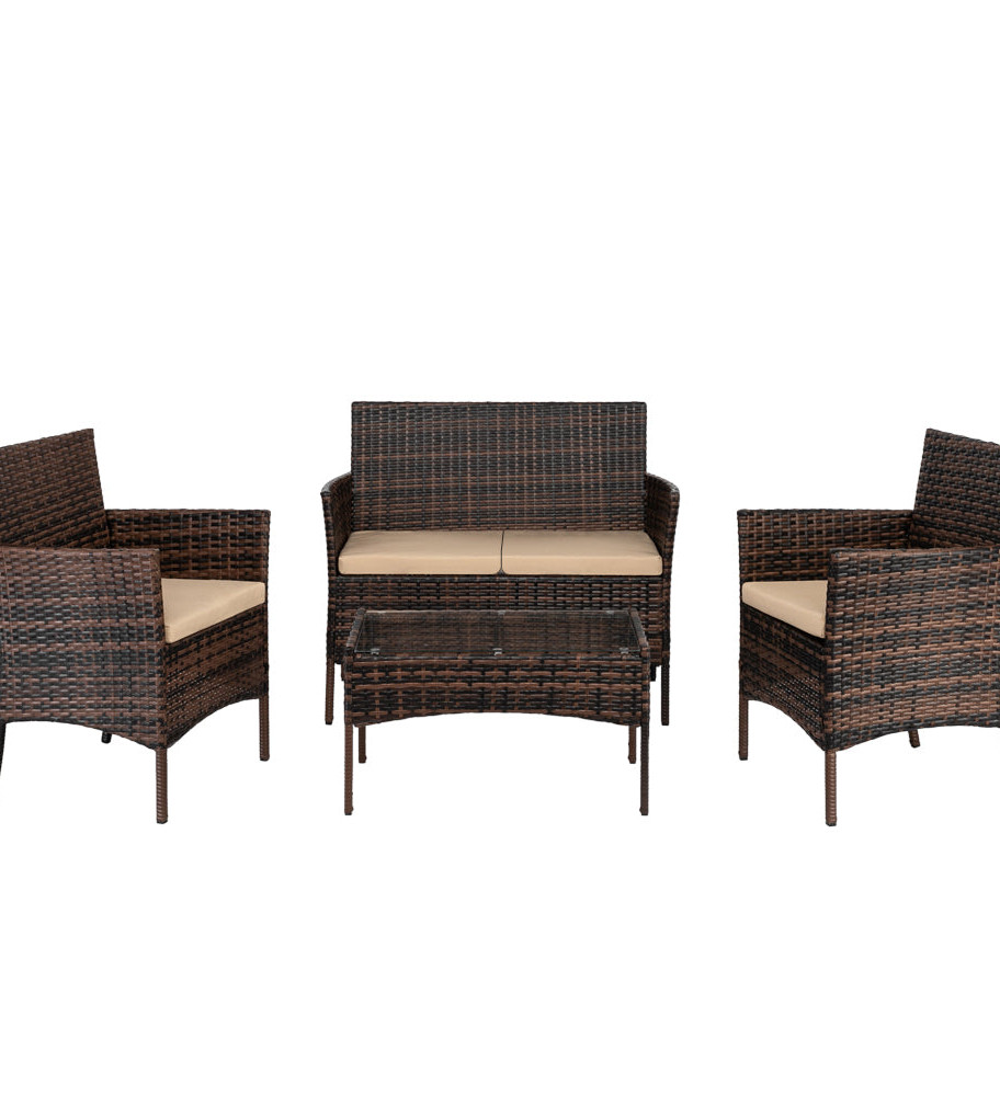 Are you looking for a comfortable sofa set for your family? If so, this 2pcs Arm Chairs 1pc Love Seat & Tempered Glass Coffee Table Rattan Sofa Set is highly recommended to you. Unlike normal leather sofa, this rattan sofa will give you a different using experience. Adopting high quality PE rattan and iron frame, it features stable, sturdy and durable. With soft cushion, it also can ensure softness and comfortable seating experience. It includes 2pcs arm chairs, 1pc love seat and 1pc tempered glass coffee table, which can meet your daily demand. So what are you waiting for? Don't hesitate, it's worth buying!