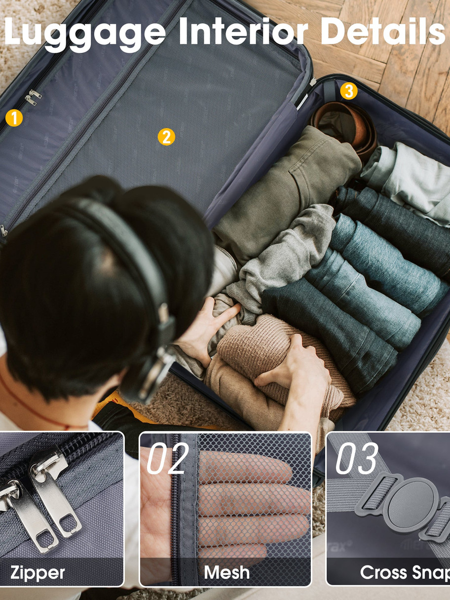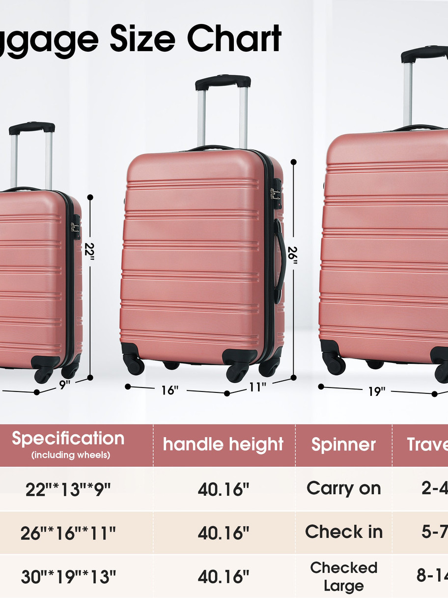 3 Piece Luggage Set Hardside Spinner Suitcase with TSA Lock 20" 24' 28" Available The 3 pieces set includes 20 inches, 24 inches and 28 inches. One set just satisfies all your different travelling needs.