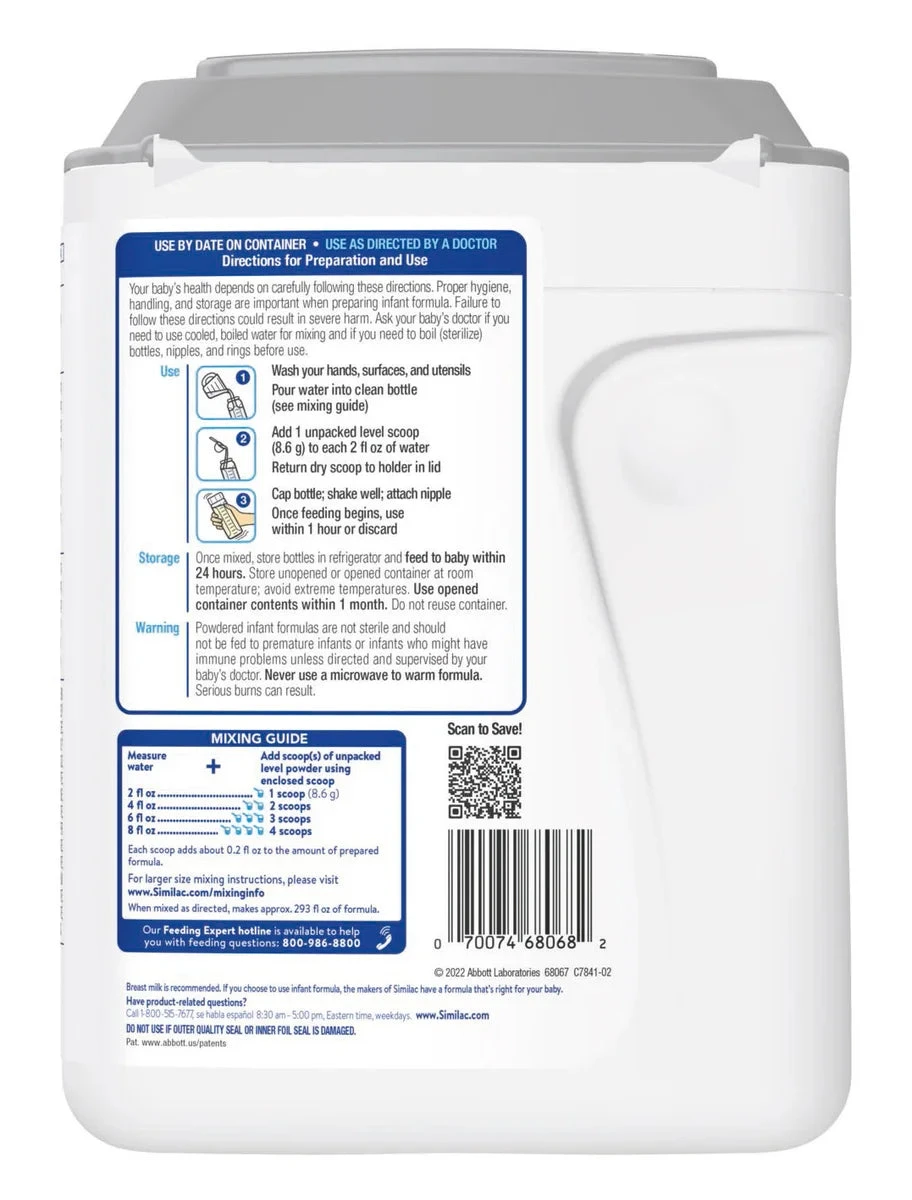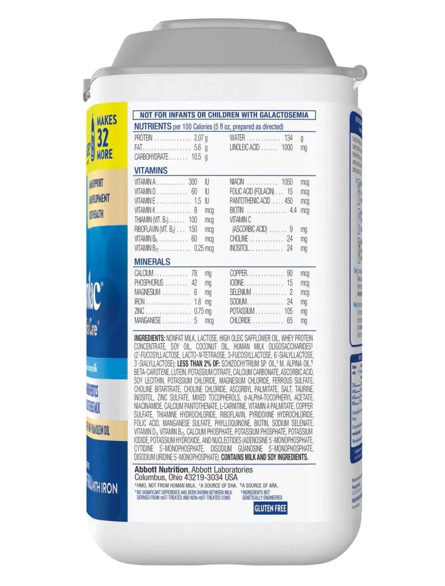 360 Total Care Infant Formula is made with an exclusive blend of 5 HMO prebiotics structurally identical to those in breast milk. Our formula also has nutrition designed for immune support, brain development, and digestive health. Contains no artificial growth hormones‡ and is non- GMO.§ * Not for infants or children with galactosemia. † Total US infant formula, all outlets as of 9/1/2021, Nielsen data. ‡ No significant difference has been shown between milk derived from rbST-treated and non-rbST-treated cows. § Ingredients not genetically engineered.