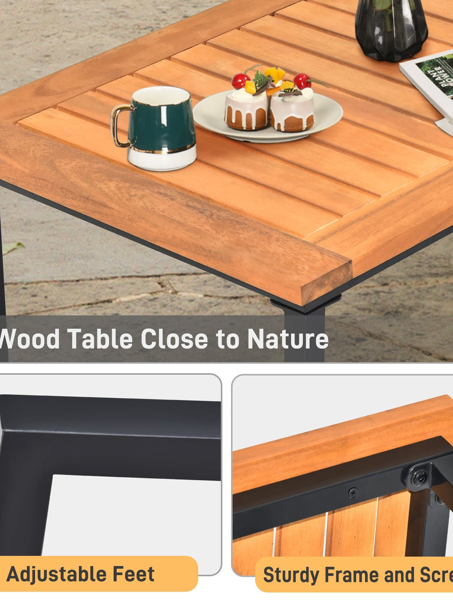 1. Modern Stylish Design: Enhance your outdoor space with this trendy patio set that adds a chic touch and seamlessly blends with any decor. Acacia wood armrests and tabletop add a touch of natural elegance to the set and elevate the overall aesthetic