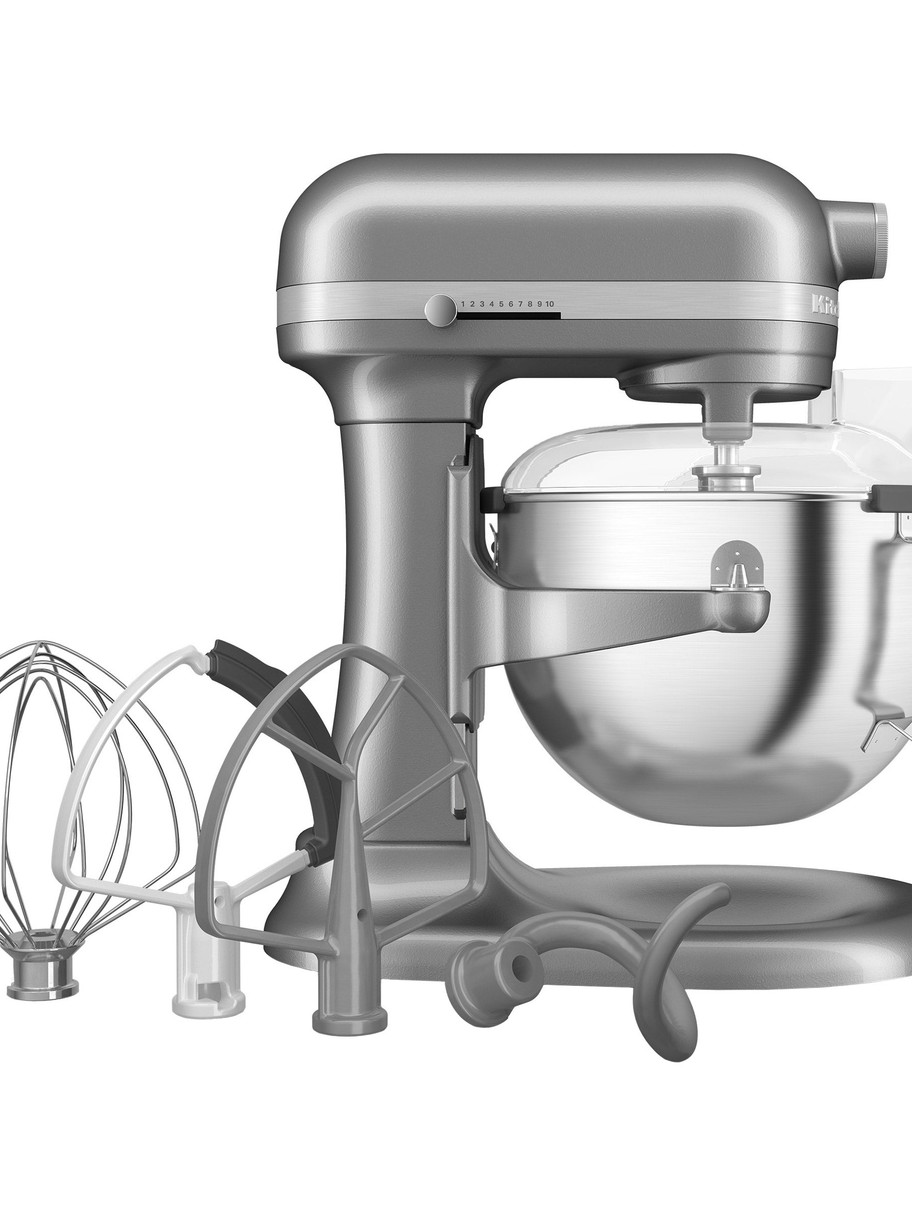 - Includes: Flat Beater, Flex Edge Beater, Dough Hook, Whisk, & Pouring Shield