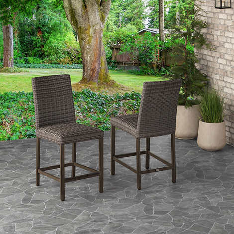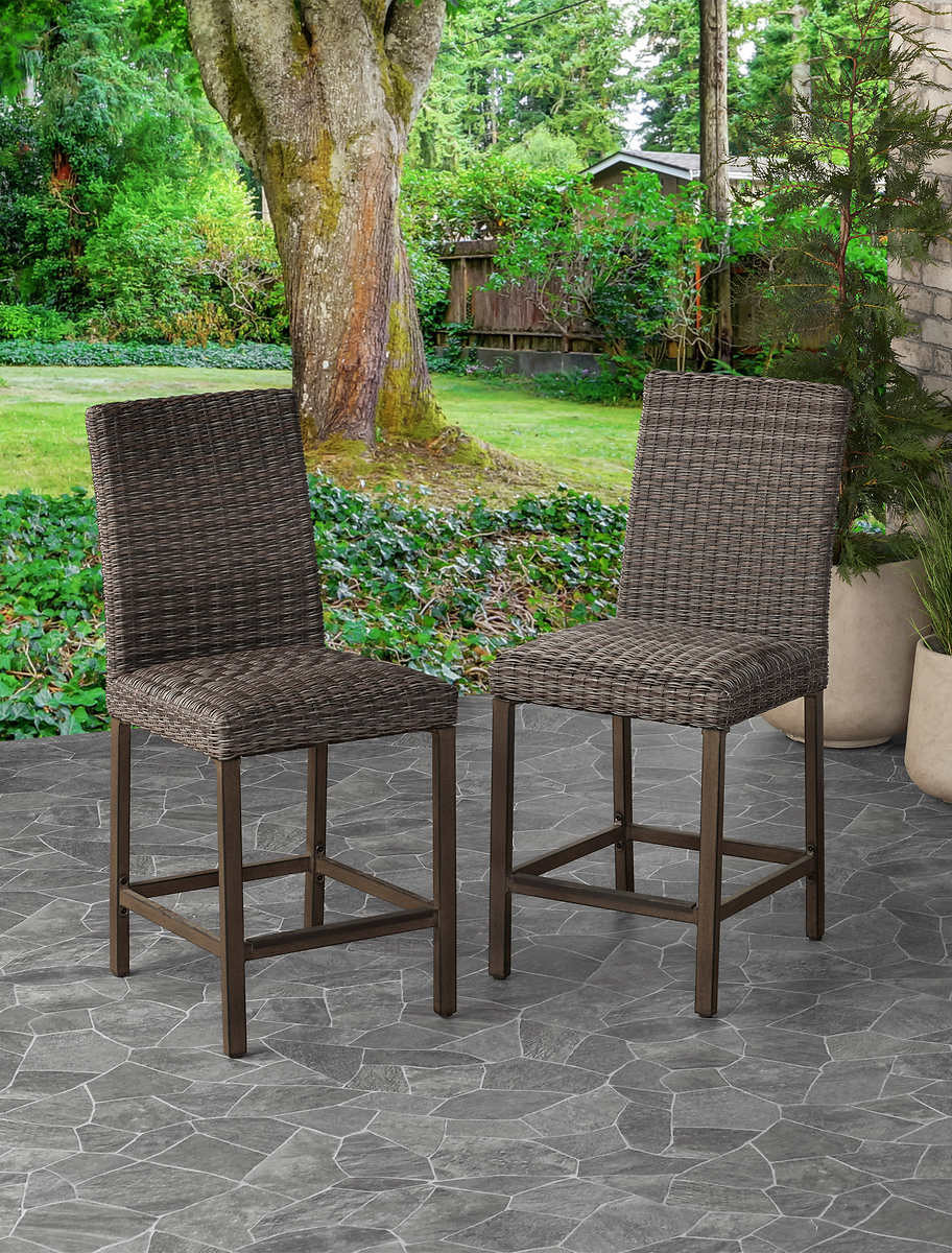Perfect for extra seating when paired with the McKinnon High Dining Fire Table Set or as standalone seating indoors or out, the McKinnon counter height stools feature sturdy , rust-resistant frames with a durable powder coated finish. The seat frames and backs are wrapped with a beautiful, multi-hued all-weather wicker that resists fading and exposure to the elements. The unique multi-layered cushion seat technology is designed to wick water away and dry quickly so you and your guests can sit comfortably for hours on end. Easy to clean and easy to love, add a set or two to your outdoor space and watch your party grow in number and in style.