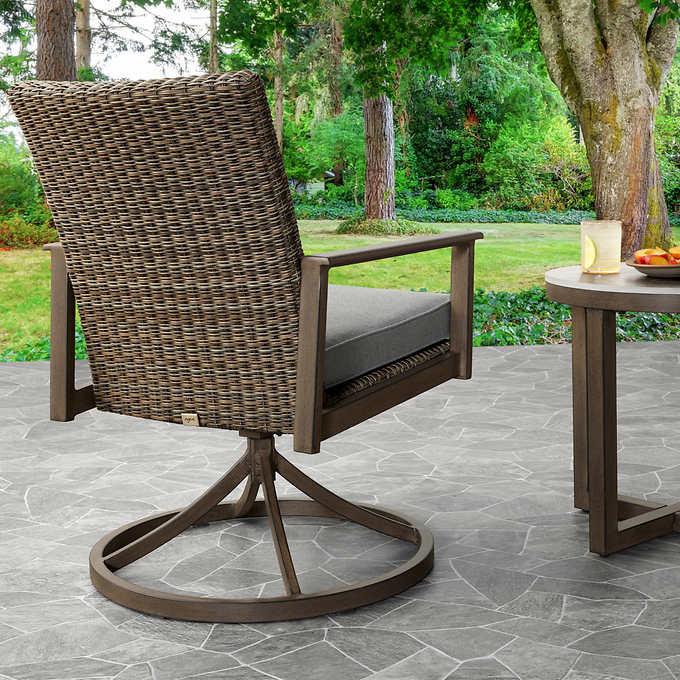 - Includes: 2 Swivel Chairs and 1 Side Table