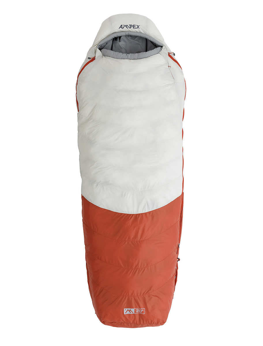- Integrated straps connect the sleeping bag to AMPEX camp pads