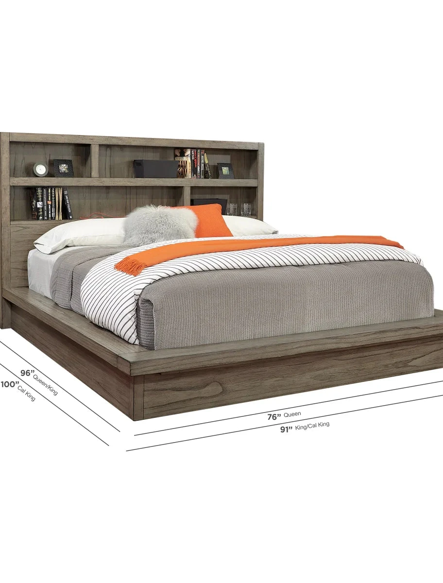 - Dual USB charging ports w/cord management on bottom headboard shelf
