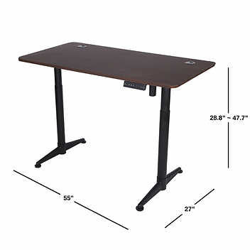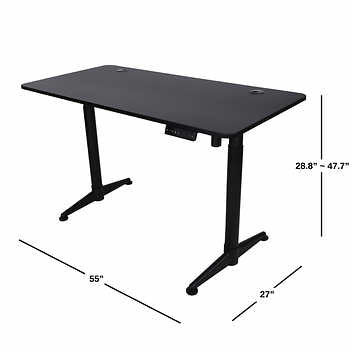 The Vortex M Series Electric Height Adjustable Sit-Stand Desk features a sturdy steel-constructed underframe. The durable 55” x 27” table top is constructed of scratch-resistant, high-pressure 3D laminate – a perfect balance between functionality and aesthetics. This sit-stand desk adjusts with a push of a button from a height of 28.8” to 47.7”. The crossbar-free design provides ample leg room under the desk. The memory controller allows users to program up to 4 preset heights. Easily change from sitting to standing within seconds.