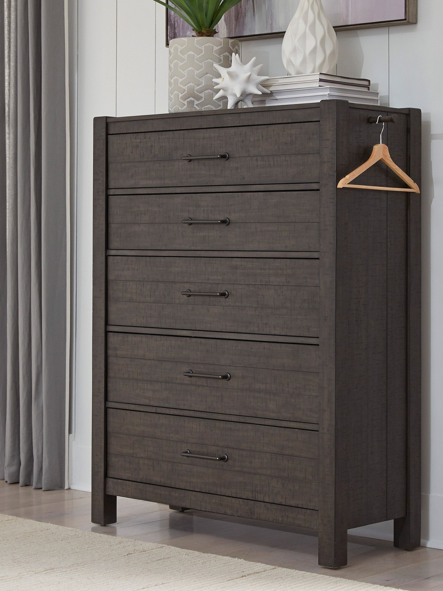 Transform your room with the Apollo bedroom collection. Featuring a carob finish with a transitional rustic look, the Apollo is an eclectic fit for nearly any decor. The contemporary styled hardware bar pulls have a simple modern shape, with a black finish.