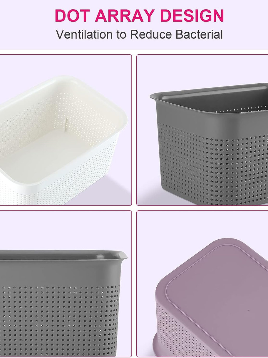 - đăVERSATILE FOR ALL SPACE STORAGEă:These lidded organizing baskets help to keep your room tidy and clean. These plastic bins for storage with lids are great for storing all you homes goods in all kinds of spaces like closets, cubbies, shelves, countertop in kitchen room, bedroom under bed or classroom.