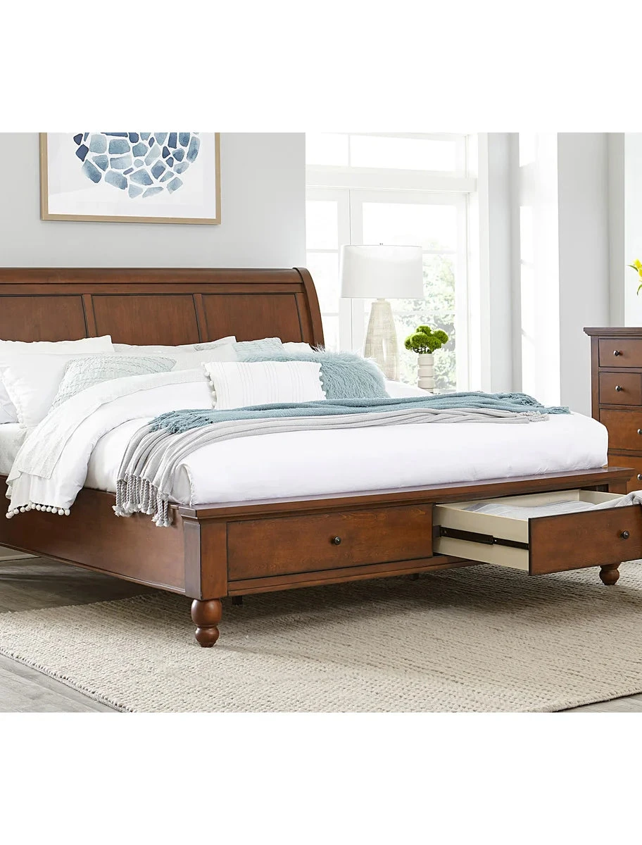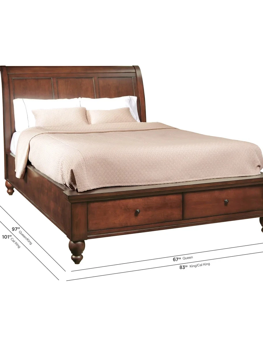- Sleigh bed includes two large drawers, conveniently located at the footboard of the bed
