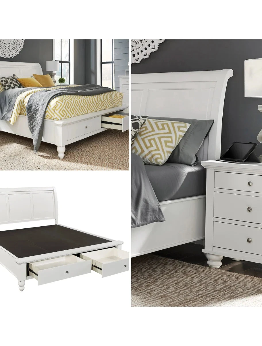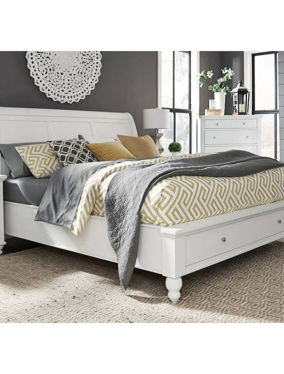 - Sleigh bed includes two large drawers, conveniently located at the footboard of the bed