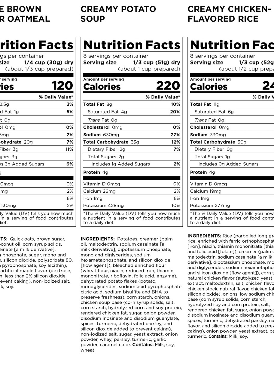 - Maple Brown Sugar Oatmeal, Creamy Potato Soup, and Creamy Chicken-Flavored Rice