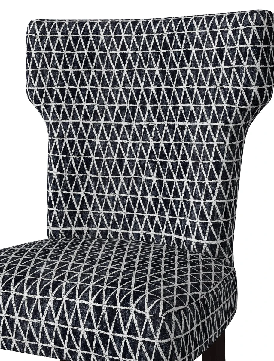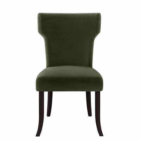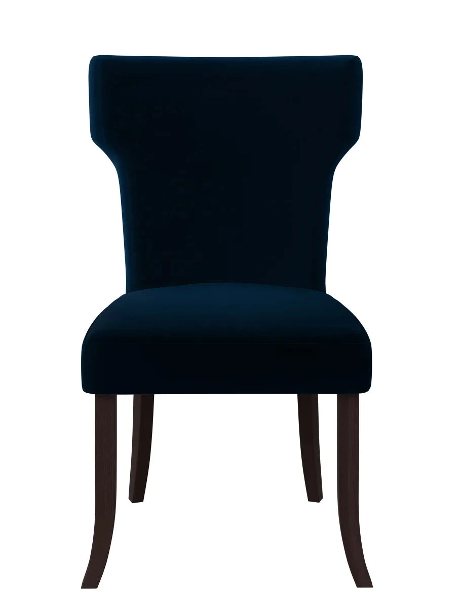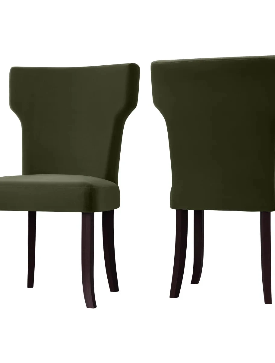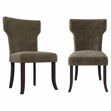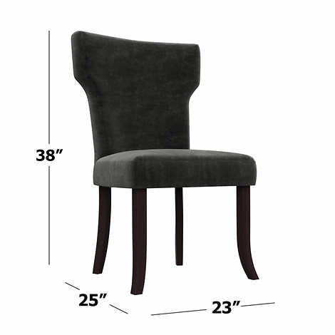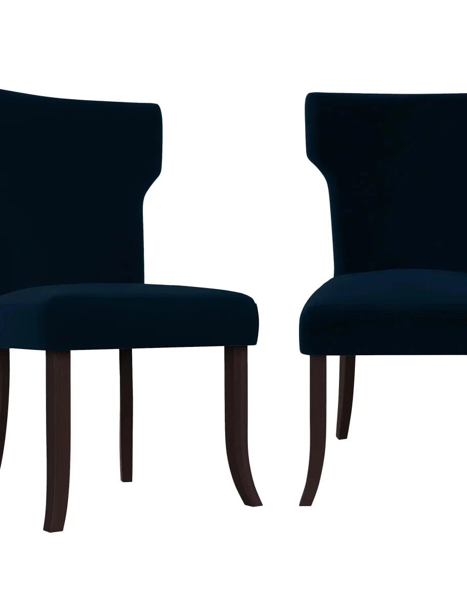 This set of two armless dining chairs is designed with shapely notched backs and square seats. Fully upholstered in a durable, easy clean 100% Polyester fabric, these chairs are a wonderful addition to the dining table, a desk, or simply anywhere you might need an extra seat.