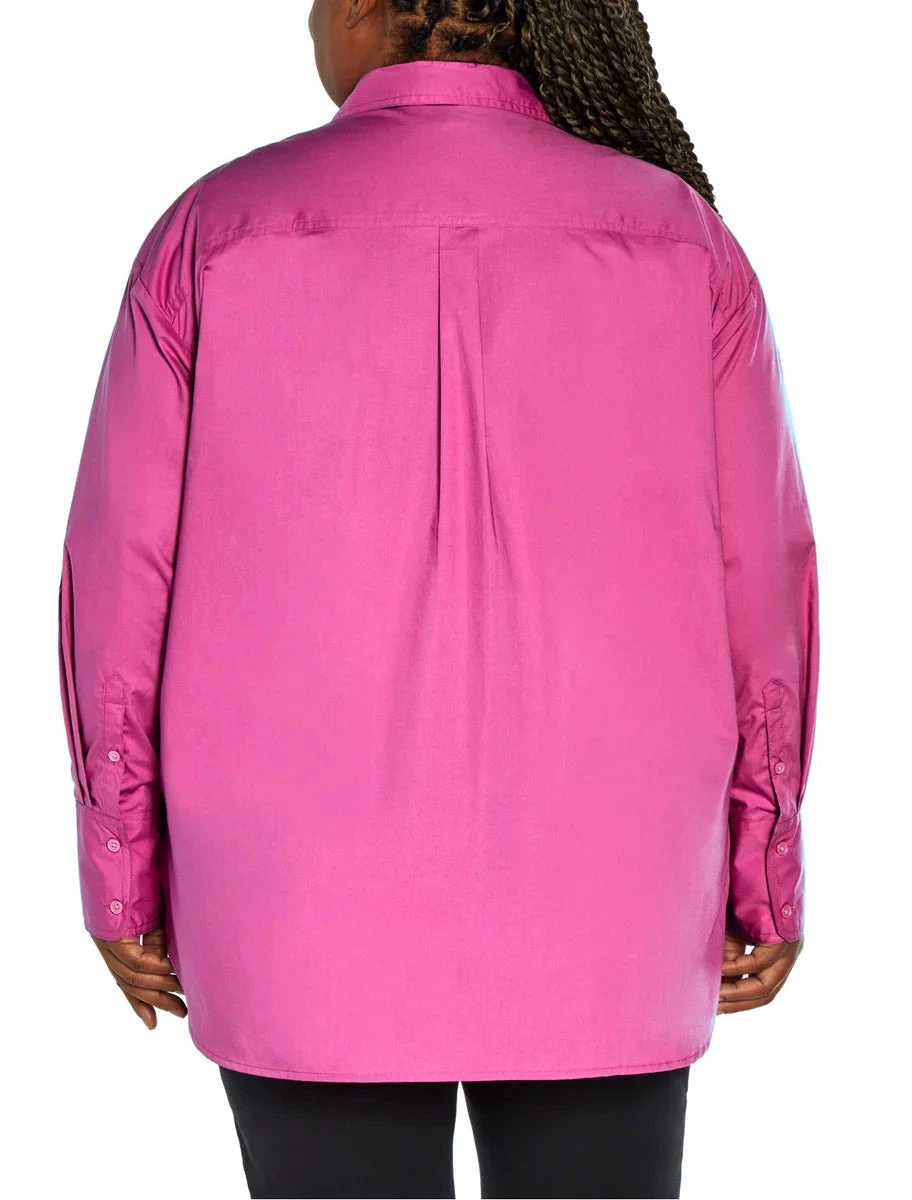 - Button-up front with pointed collar