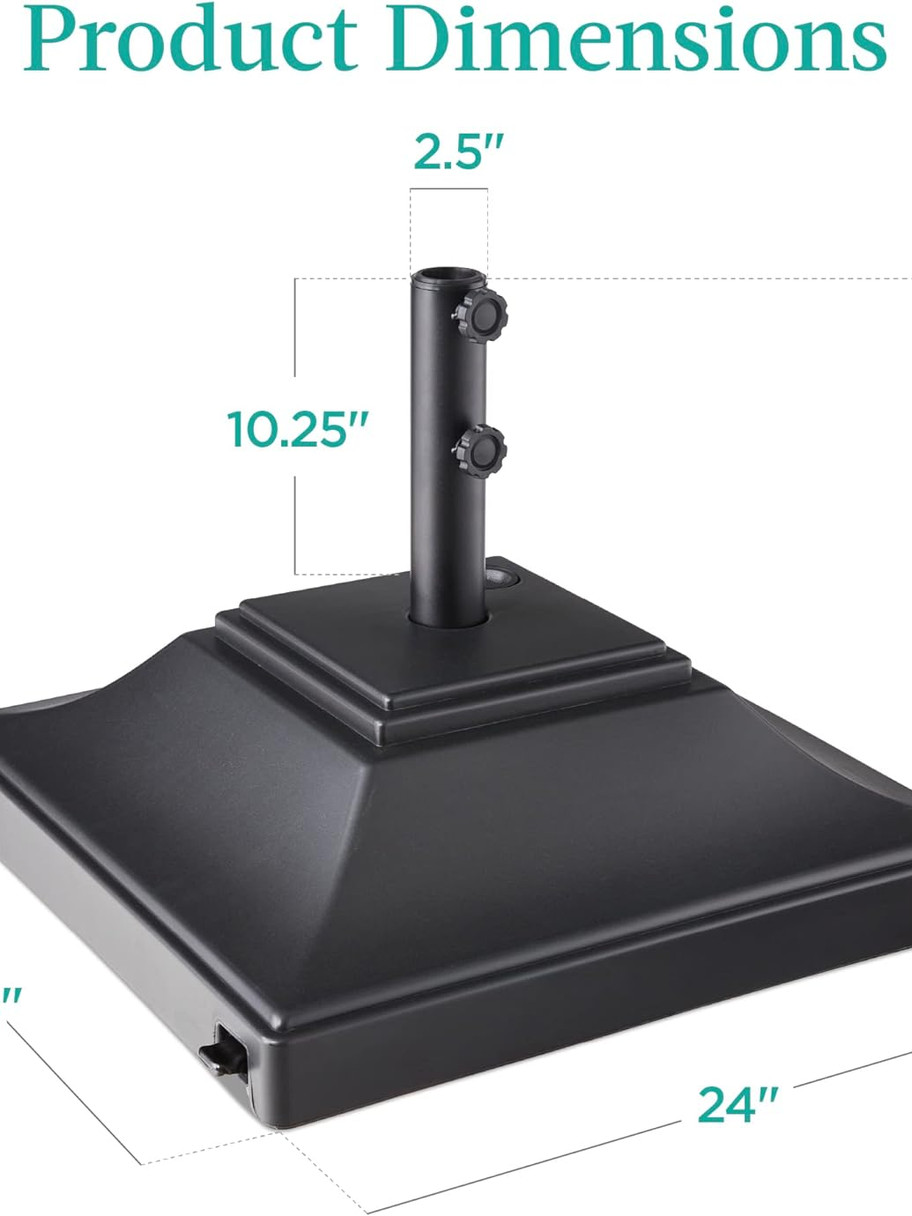 - FITS MARKET UMBRELLAS 6-12FT: A contemporary design blends with most outdoor decorations and fits most market umbrellas sized 6-12ft with poles sized 1.5-1.9in; OVERALL DIMENSIONS: 24"(L) x 24"(W) x 18.5"(H)