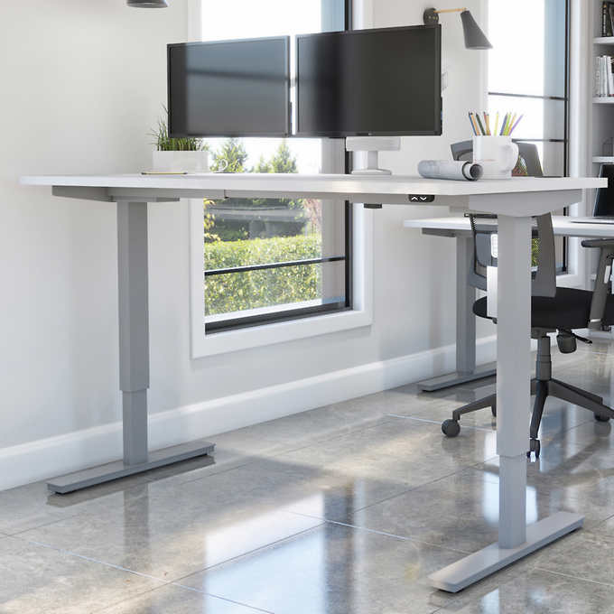 Bestar Upstand 30" x 60" Adjustable Height Desk with Monitor Arms