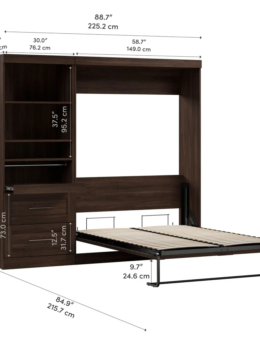 - Full Murphy Bed: 58.7" L X 18.2' W X 83.7" H