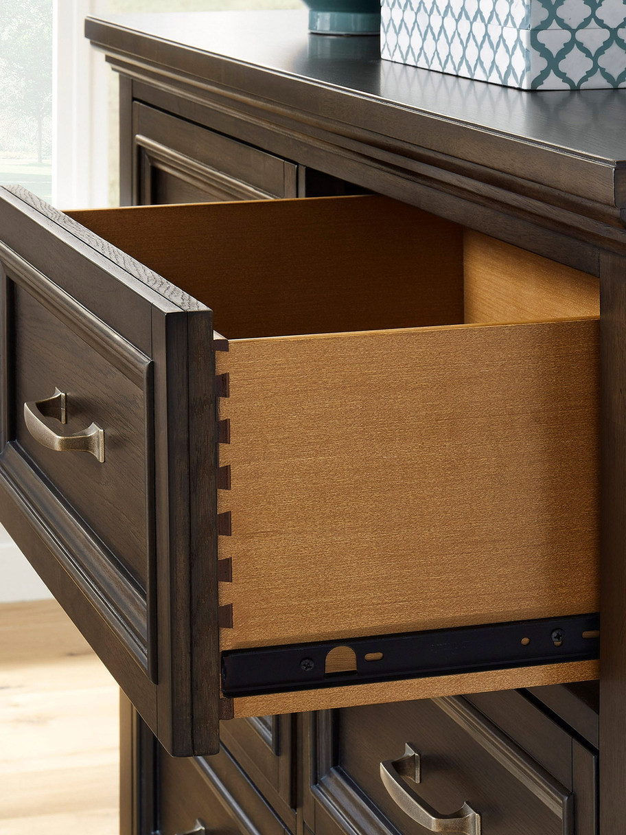 Eight spacious storage drawers with English dovetail construction and ball bearing drawer guides