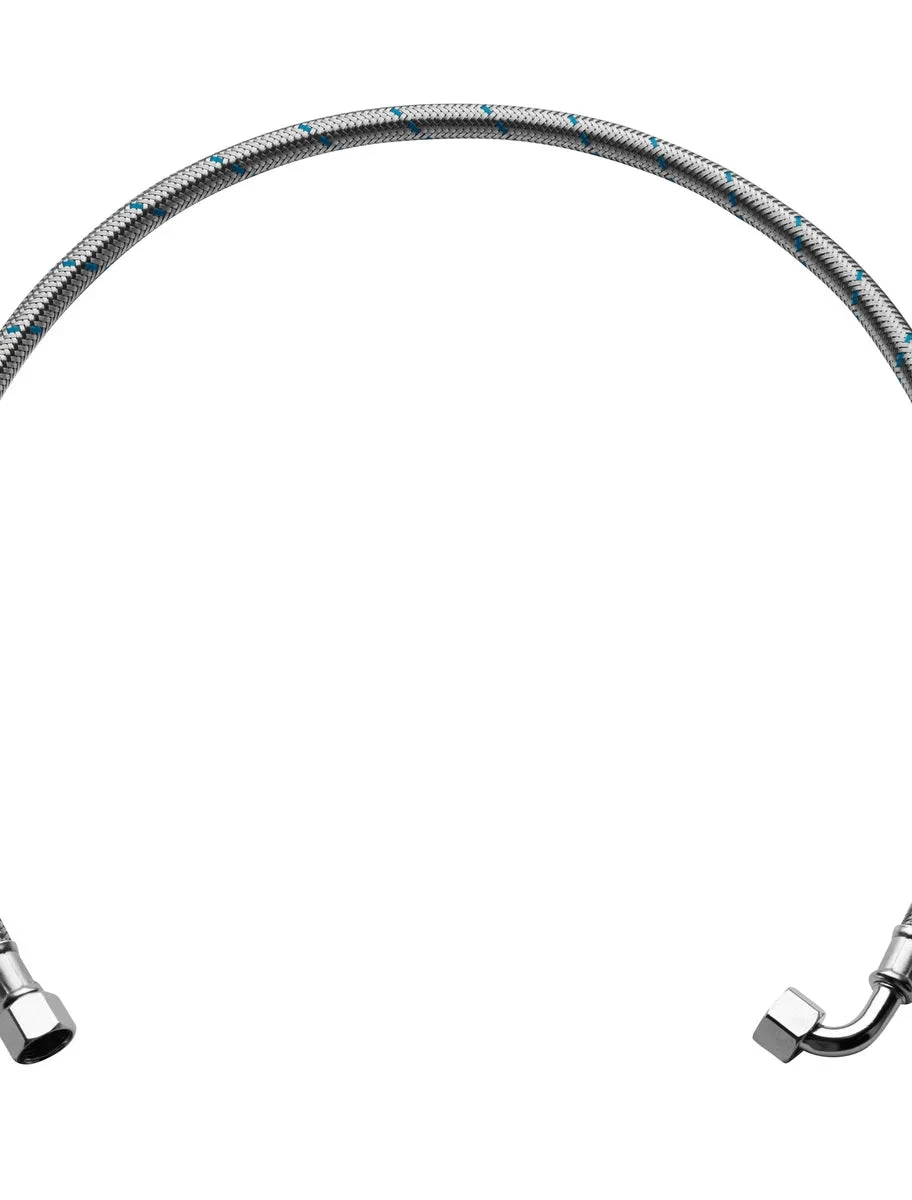 Braided-metal cold water supply hose.