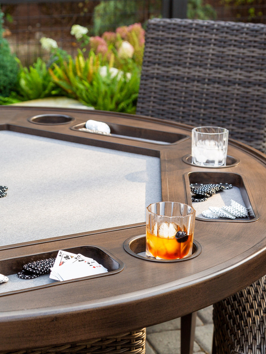 - Poker Table Top is Lined with Sunbrella® Fabric that is Resistant to Stains, Mildew and Fading