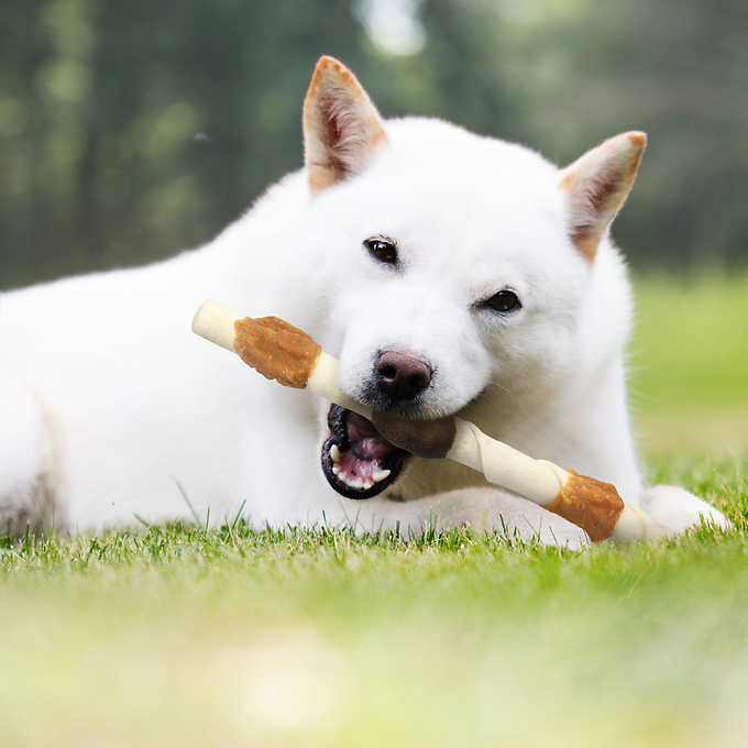 - Healthy dog chews are 100% beef hide wrapped with real chicken, liver, and sweet potato