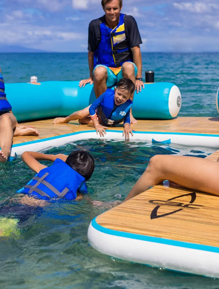 Introducing the all-new California Boat Company inflatable Party Island Water Lounge! With inflatable backrests, six cup holders, and space for six or more adults and kids, the water lounge is the perfect item to bring to the beach or lake for the family! The island includes a carry tote with a shoulder strap, a 12V DC electric pump, and a repair kit.