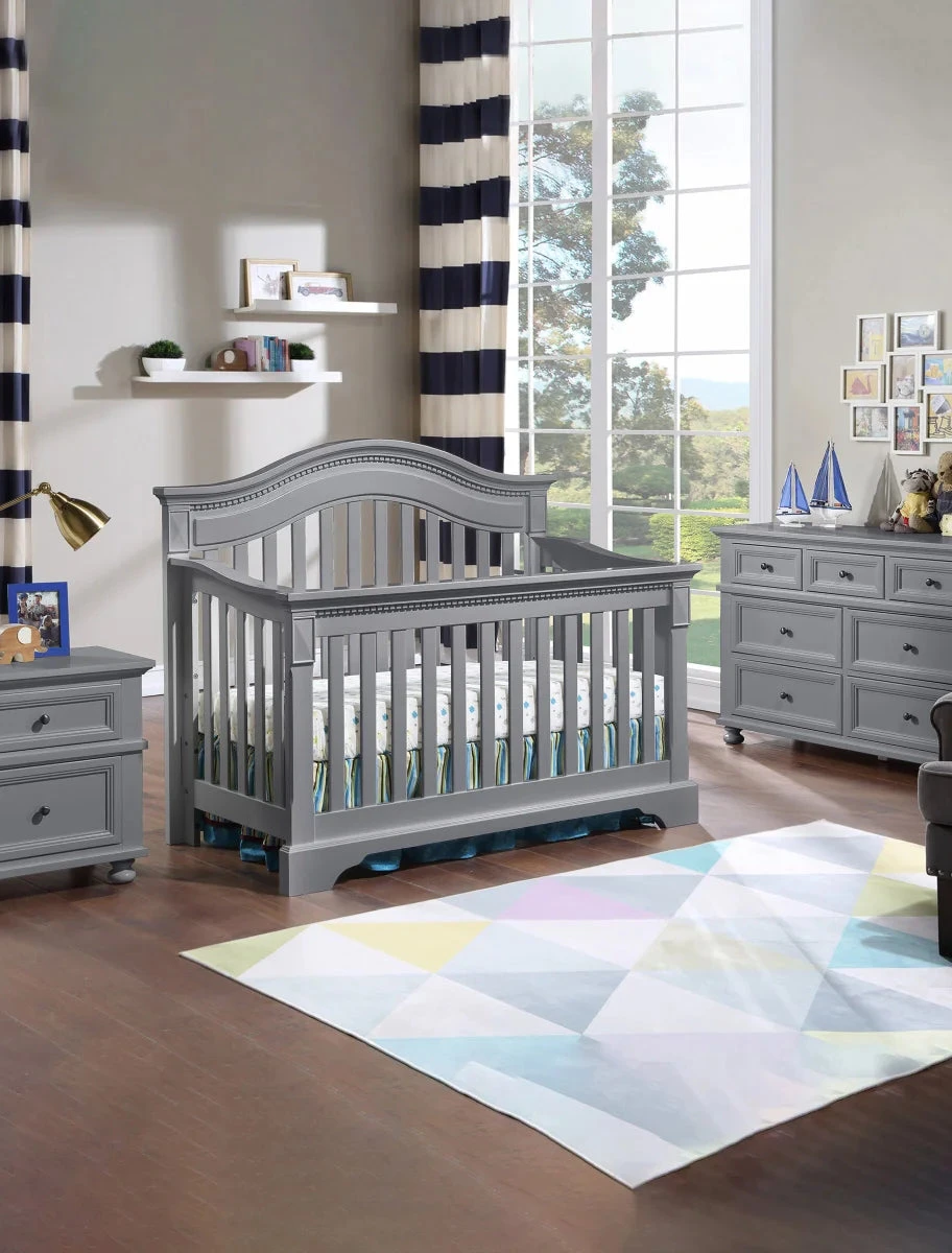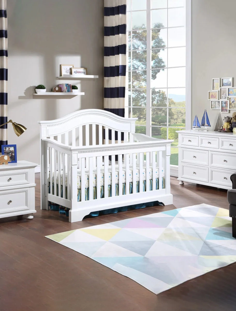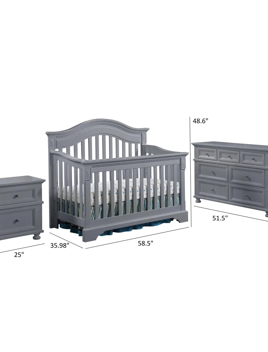 4-piece set includes: 3-in-1 convertible crib, Conversion Rail Kit, fully assembled 7-drawer dresser, and 2-drawer nightstand