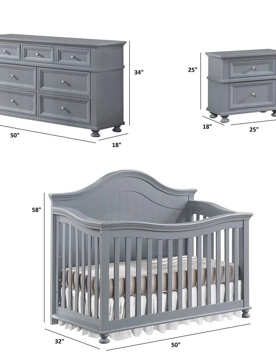 Set Includes: 3-in-1 Convertible Crib, Toddler Rail Kit, 7-drawer Double Dresser and 2-drawer Nightstand