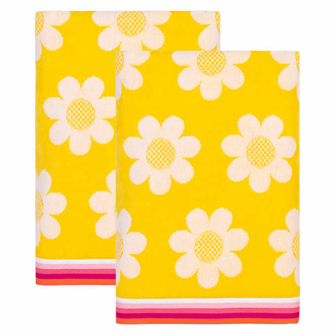 Set of 2 plush and adorable kids beach towels perfect for laying out on the sand or wrapping up by the pool. Available in 5 bright and happy kid-friendly designs. Made with 100% cotton terry and machine washable.