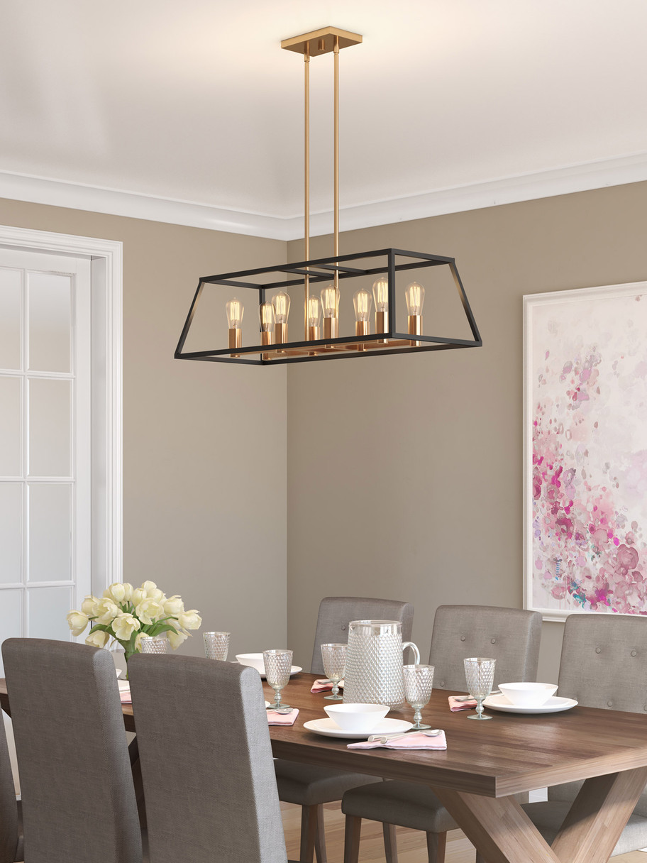 Rustic with a modern feel, Artika's Carter Rectangular Pendant light features a classic rectangular pattern that goes perfectly with modern and contemporary spaces. This 8-light rectangular form features a steel painted black and gold enclosure to frame vintage-style light bulbs. All the eight lights line the inside of the fixture, creating stunning illumination and a unique, eye-catching design that will become the instant centerpiece of your dining room. This indoor chandelier lighting is easy to install; includes all mounting hardware for quick and easy installation. Artika’s hanging chandelier is made of the best material for a great durability.