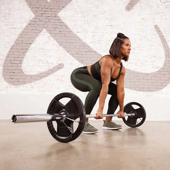 - Includes a 7' Olympic Bar with Dual Spring Clips