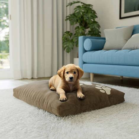 The Cloudy Paws pet bed features a velvety soft cover perfect for snuggling and is filled with a lofty cloud-like fiber fill. The rectangular shape allows your pet to stretch out comfortably. The top features a pet inspired embroidered design and reverses to a solid color back.