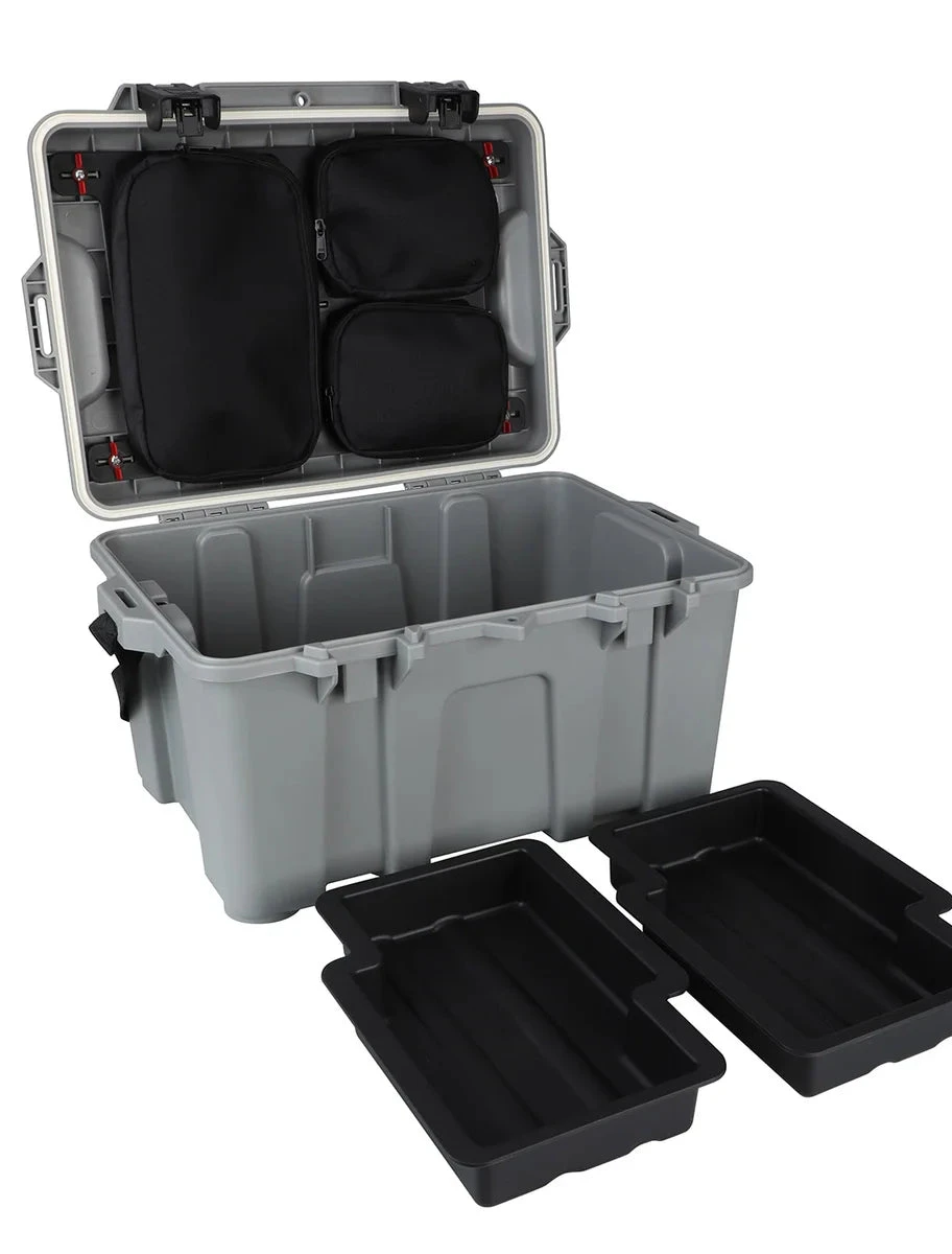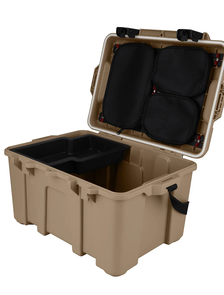 - Heavy Duty Latches with Hand Strap and Removable Lid Storage