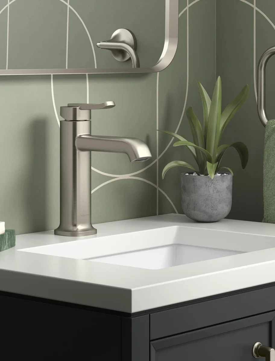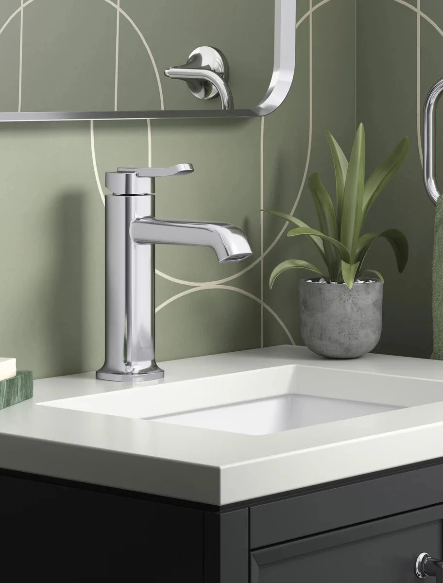 For single-hole or 4" (102 mm) centerset installation (escutcheon plate included)