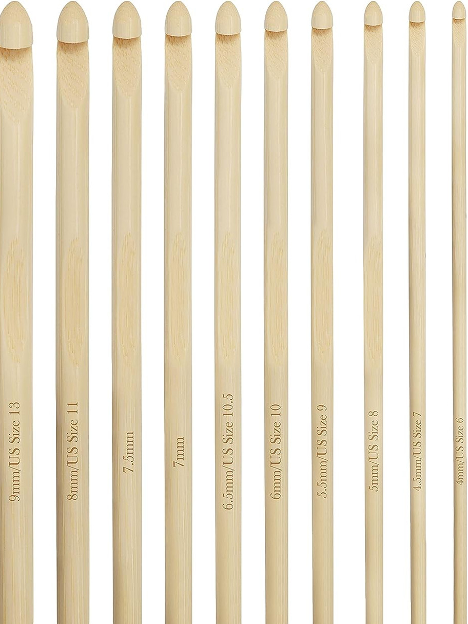 - TUNISIAN/AFGHAN BAMBOO HOOKS: Tunisian crochet or Afghan crochet uses a lightweight elongated needle hook. They are sometimes considered to be a mixture of crocheting and knitting. Some techniques used in knitting are also applicable in Tunisian crochet. The hooks in this set are made from bleached bamboo wood which has no rough edges for a smooth finish. Bleached bamboo also makes them stronger than regular wooden crochet hook sets for lifelong quality assurance.