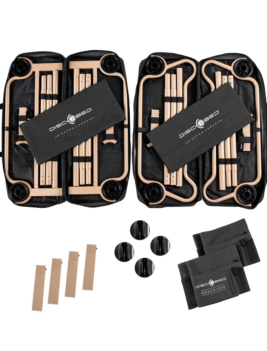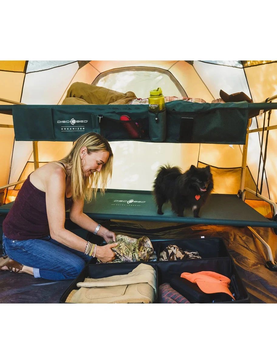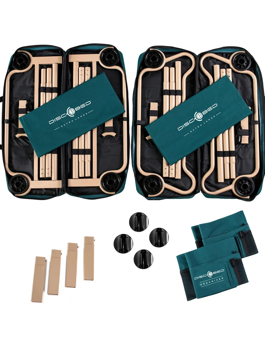 The Disc-O-Bed® XL Combo kit allows you to sleep comfortably just about anywhere! From camping in the great outdoors, as a spare bed in the home for that unexpected guest, as a bunk for when the grandkids visit, or just as an extra bed for your vacation home – wherever space is at a premium – the unique and patented XL Portable Bunk by Disc-O-Bed® with included accessories is just what you need.