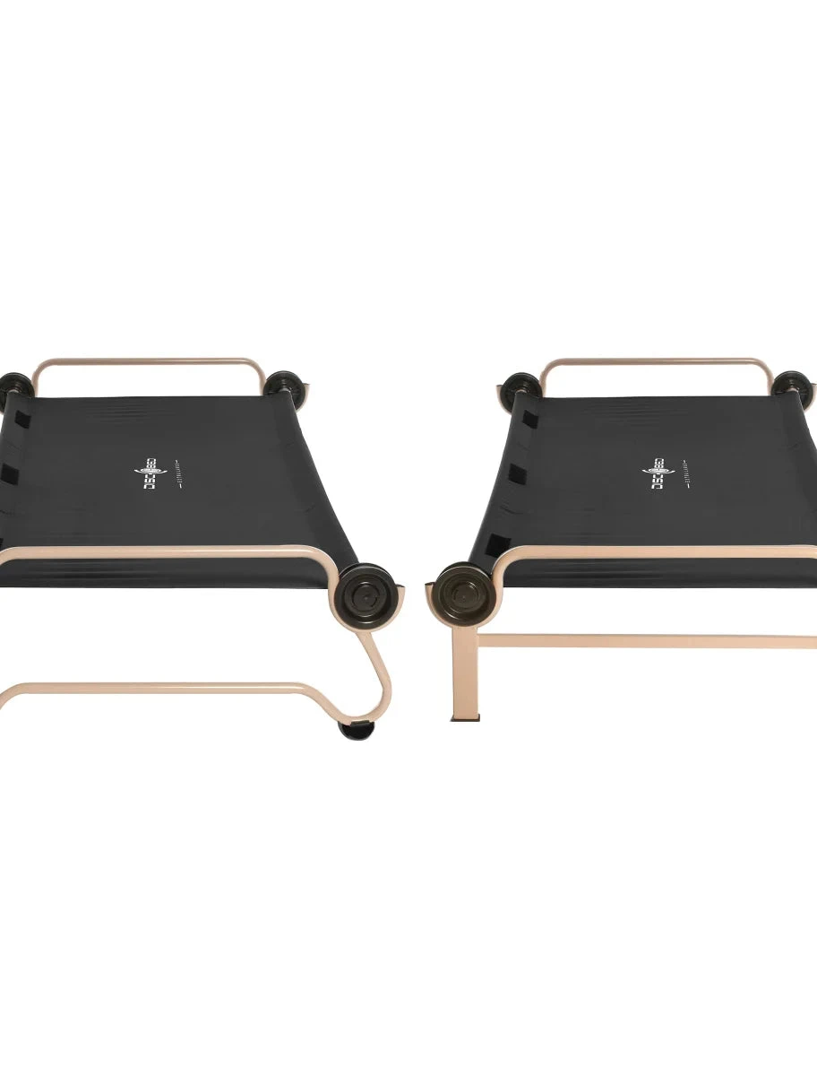 By simple and quick action, the bunk converts into a sitting bench during the day or can be used separately as two single beds and fits most domed tents on the market today. No ladder required.