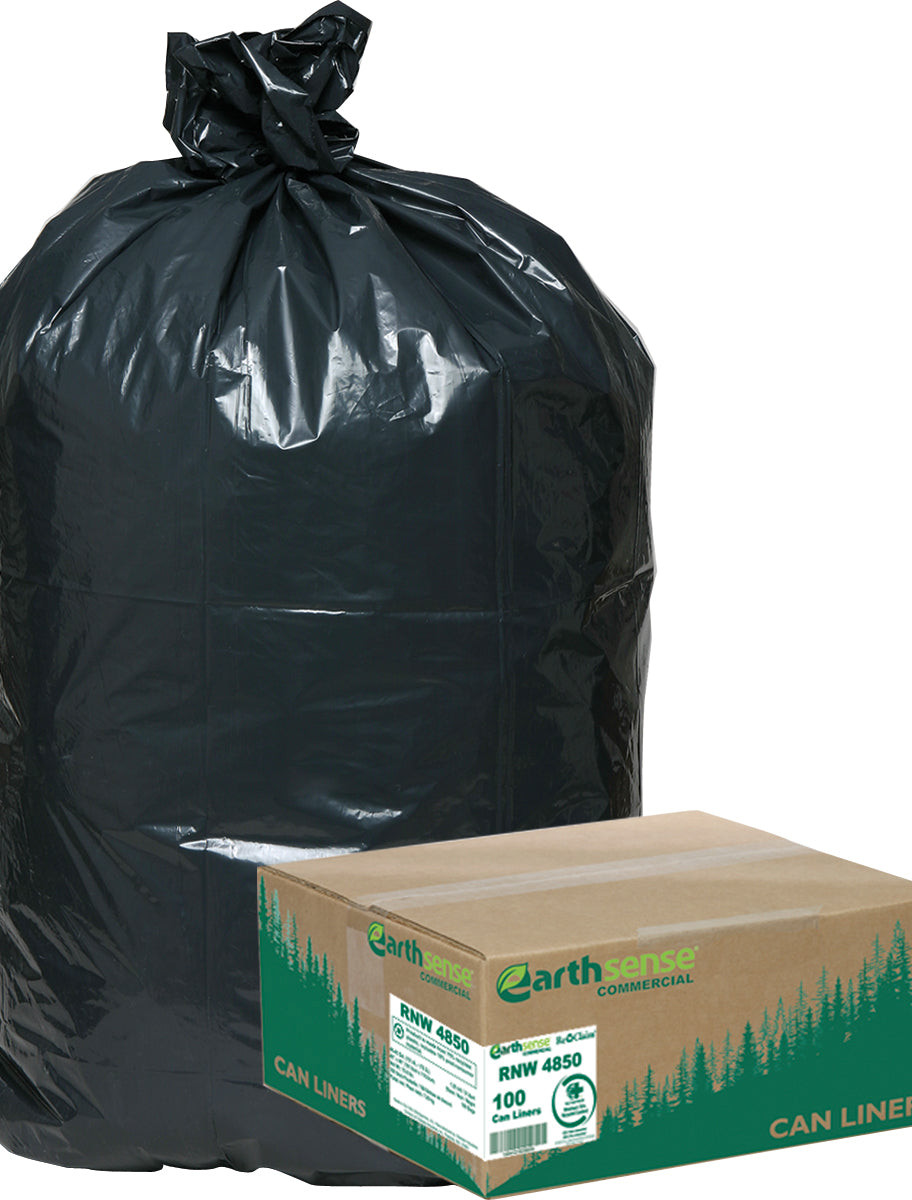Earthsense Recycled Star Bottom Trash Bags, 40-45 gal, Black, 100-count