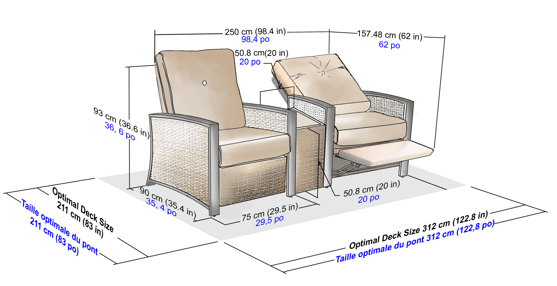 - Includes :2 Recliner Chairs and 1 Side Table