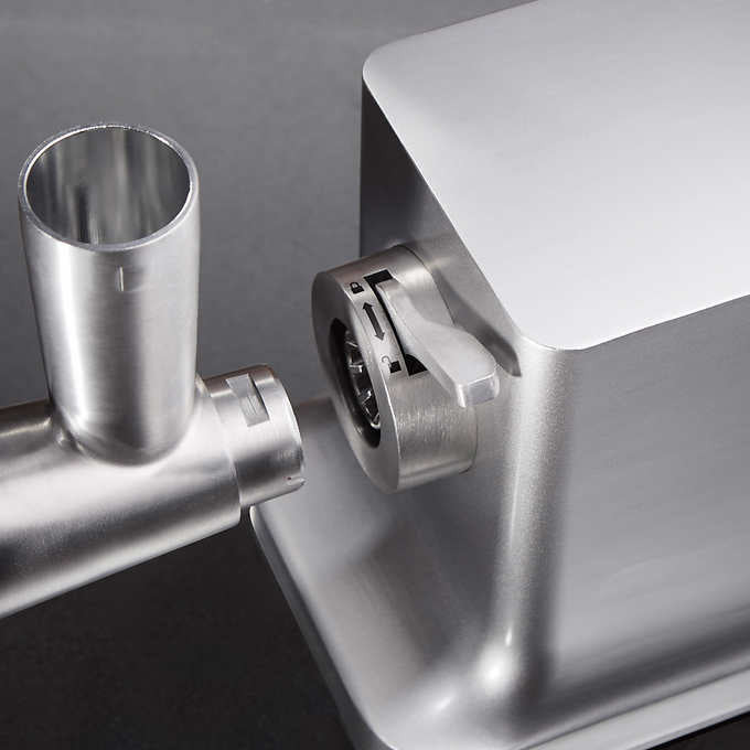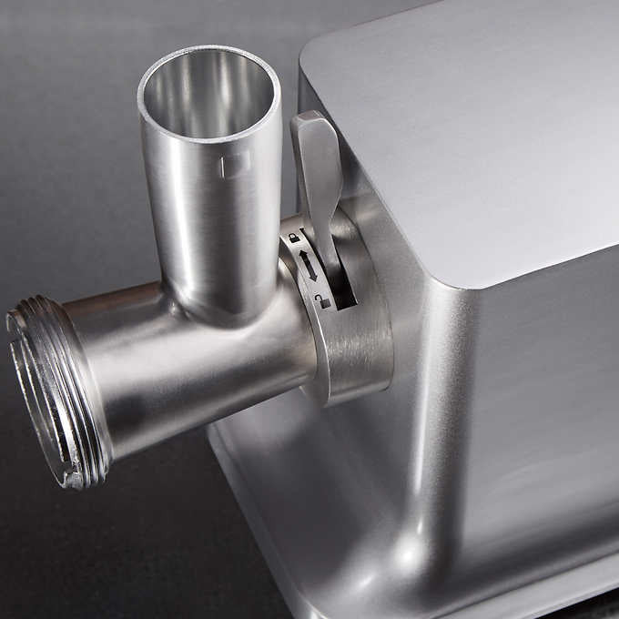 - Includes 2 Stainless Steel Grinding Plates (medium & coarse), Sausage Stuffing Funnel, and Stomper