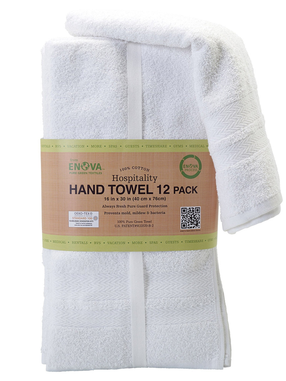 Enova’s® Pure Green™ Recycled Cotton Towels are the ideal everyday choice to use at home, your rental property, business, or hotel. Crisp white, soft, absorbent, and quick drying: With Enova’s® Pure Green™ Recycled Cotton Towels it’s easy to bring hotel-linen quality and durability into your space!