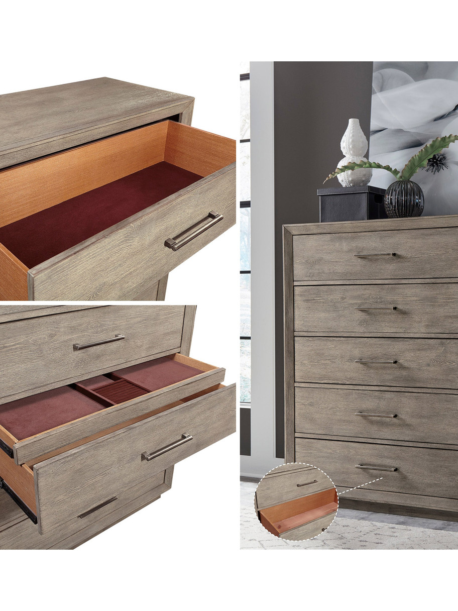 The Essex Collection is contemporary styled for a modern American look. With a gray linen finish, inspired satin silver hardware and signature features are just a few elements that give the Essex its unique appeal.