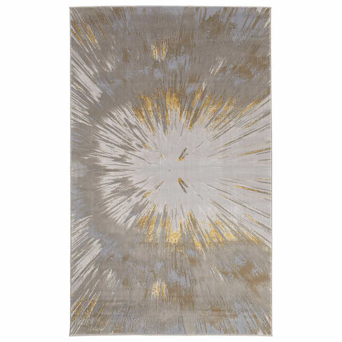 Feizy Jewel Area Rug Collection, Gray/Gold Sunburst