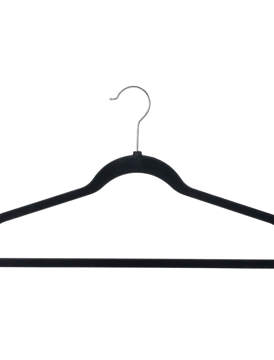 This pack of 100 non-slip hangers feature an ultra thin design making them the perfect space saving solution for maximizing your closet space. The flocked velvet like texture keeps clothes secure so items will not fall or slip off. The hangers are also designed to ensure the shape of clothing is preserved. They are perfect for securely holding any material including cashmere and silk, and are great for items with small straps.