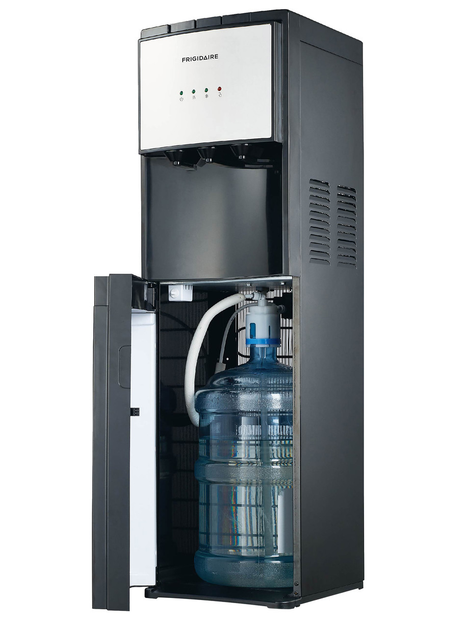 This Frigidaire Water Cooler offers an exterior cabinet that is a beautiful sparkling stainless steel, giving it an upscale look. Bottom-Loading technology hides the bottle from sight. Lifting heavy bottles and cleaning accidental spills are eliminated with this Frigidaire bottom load water cooler.