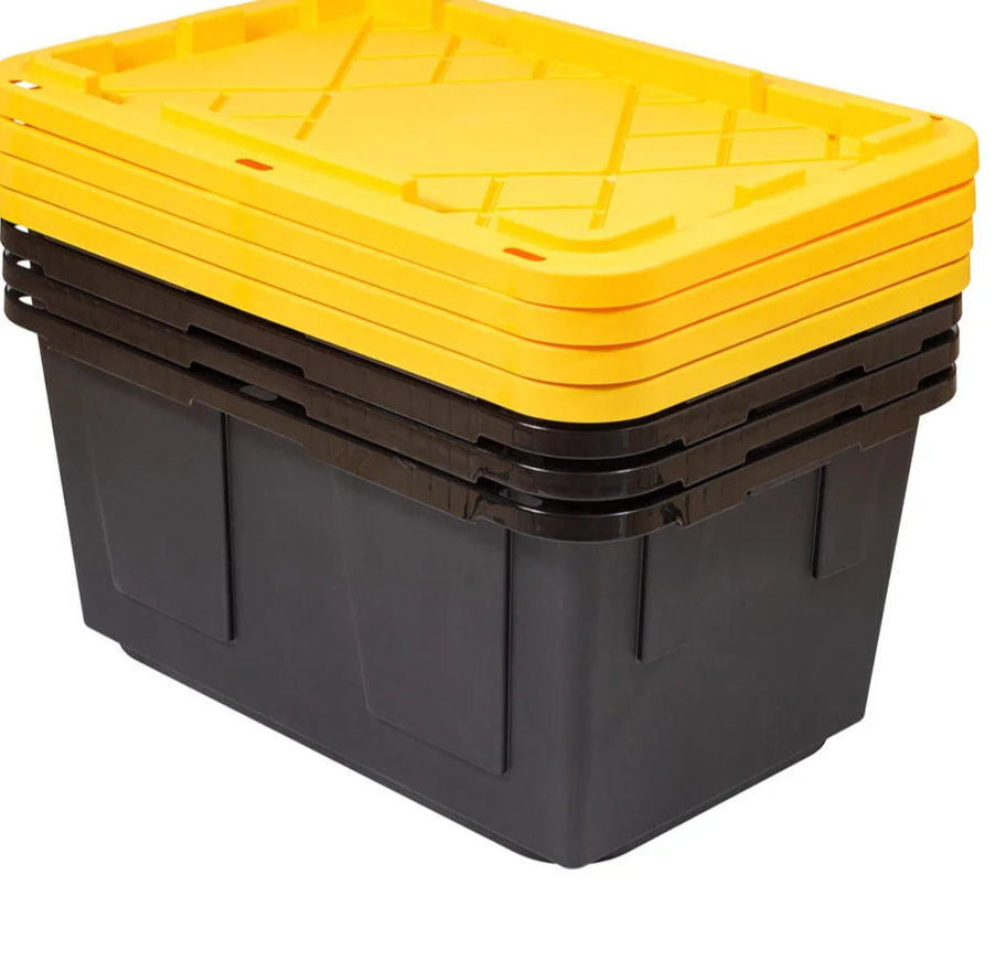 Greenmade 27 gallon (102 liter) storage bins are made of heavy-duty, reinforced plastic that can withstand heavy use. They are NSF food grade certified and provide a convenient and practical option for everyday storage needs. Each bin has cutouts that can be used to lock the lid to the base with a padlock or zip ties for additional security. The lids for the storage bins are recessed for easy stacking. The stack-able design helps conserve storage space.