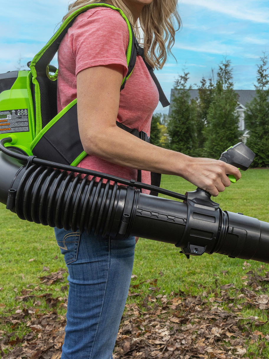 Greenworks 780CFM Backpack Blower with 4Ah Battery, Rapid Charger, and Leaf Hau