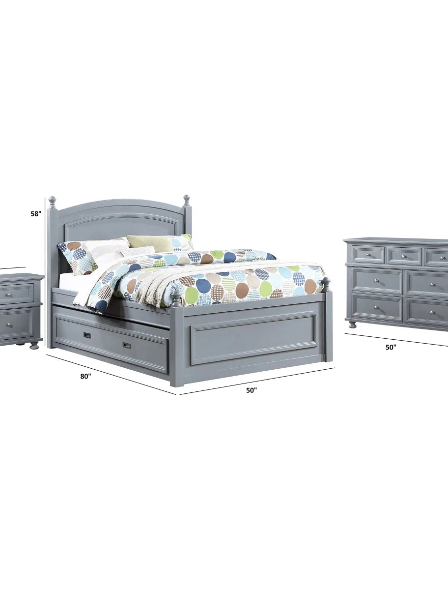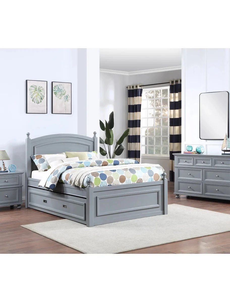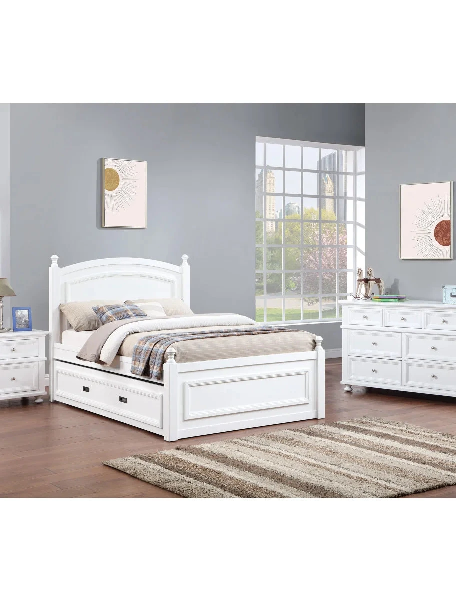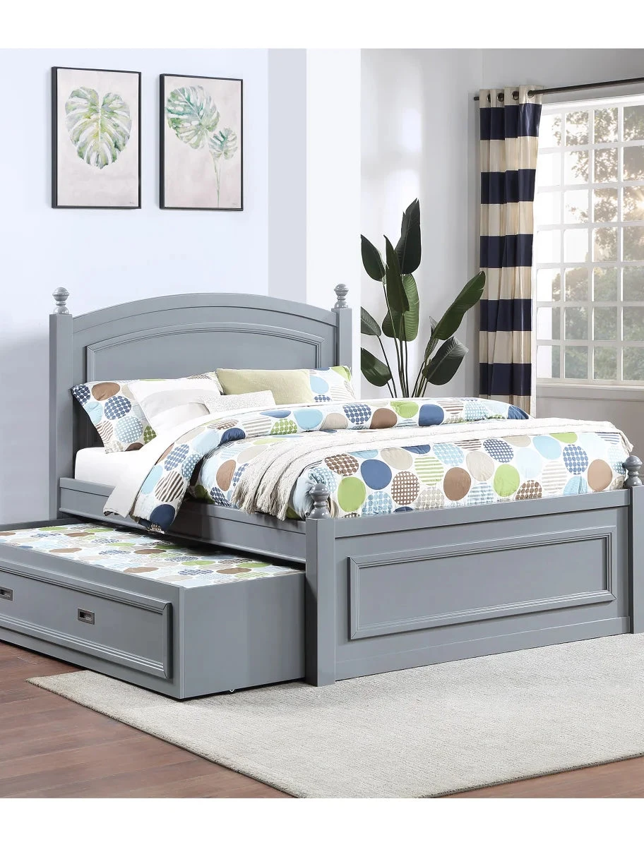 The Hailey Youth Bedroom Collection is a practical addition to any bedroom. The full bed features a pull-out trundle that can be used as an extra full-size bed for overnight guests or can be used as storage space. When closed, the trundle sits flush with the bed, making it a discreet addition to the collection.