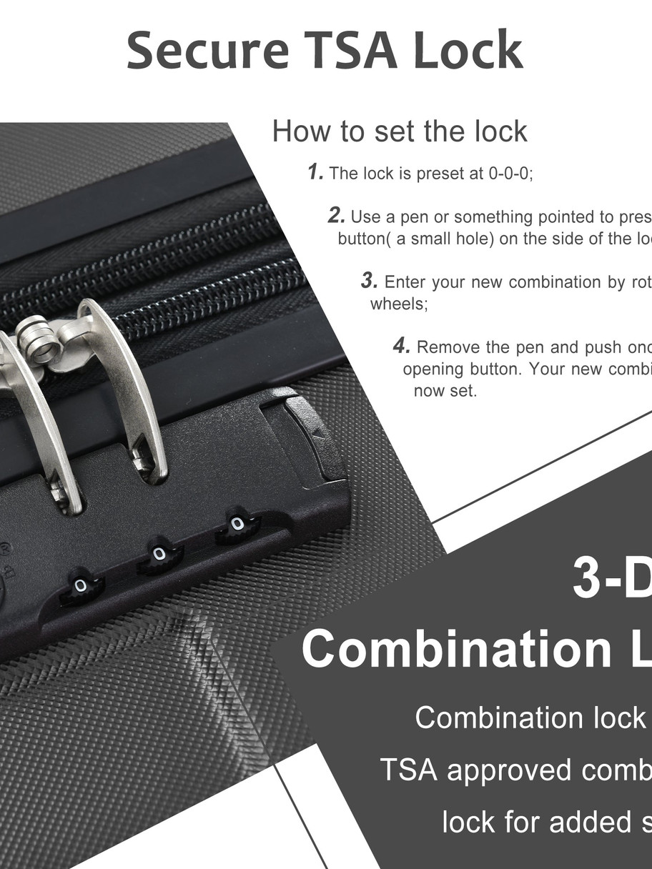 TSA Approved Lock: Each travel luggage comes with 3-dial TSA approved combination lock to better protects your property and facilitate customs clearance.