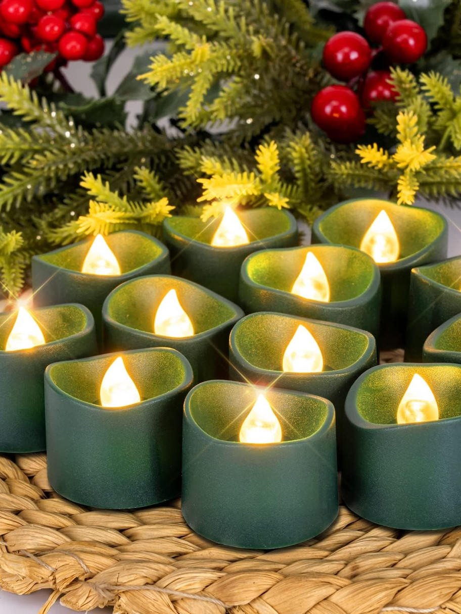 - WORK OUT OF THE BOX & LONG-LASTING: Homemory chooses high-quality batteries that have 1.5 to 2 times LONGER battery life than similar battery tealights. This has been recognized by many customers. It can ensure the green tea light candles work last throughout your Holiday.